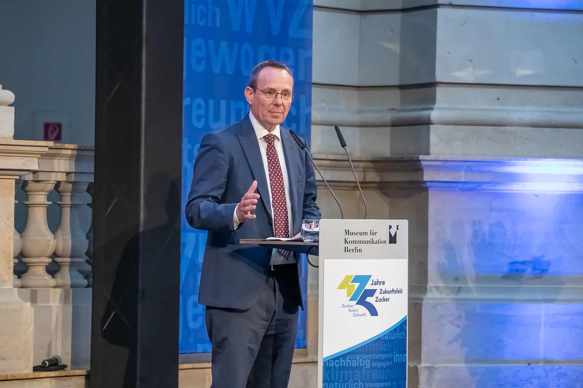 Diesen Impuls nahmen die Festansprachen von Dr. Lars Gorissen und Dr. Stefan Streng, Vorsitzende des Vereins der Zuckerindustrie und der Wirtschaftlichen Vereinigung Zucker, auf. Beide machten deutlich: Die Stärke der Zuckerverbände liegt in ihrer Verbindung von Tradition und Zukunft. Sie erinnerten an große Umbrüche, wie das Ende der Zuckerquote und warben für faire Wettbewerbsbedingungen, wirksamen Pflanzenschutz und Verlässlichkeit im politischen Dialog.