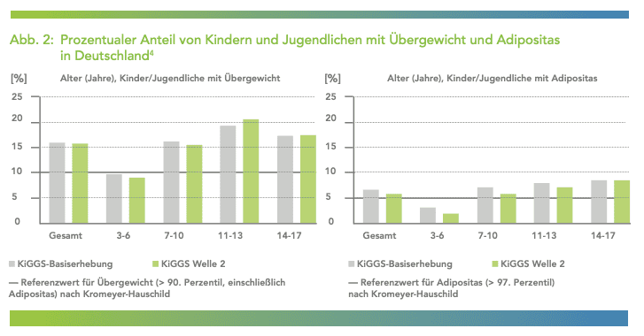 4 Schienkiewitz, A., Brettschneider, A.-K., Damerow, S. & Schaffrath Rosario, A. Overweight and obesity among children and adolescents in Germany. Results of the cross-sectional KiGGS Wave 2 study and trends. J Health Monit, 15;3(1),15-22 (2018).